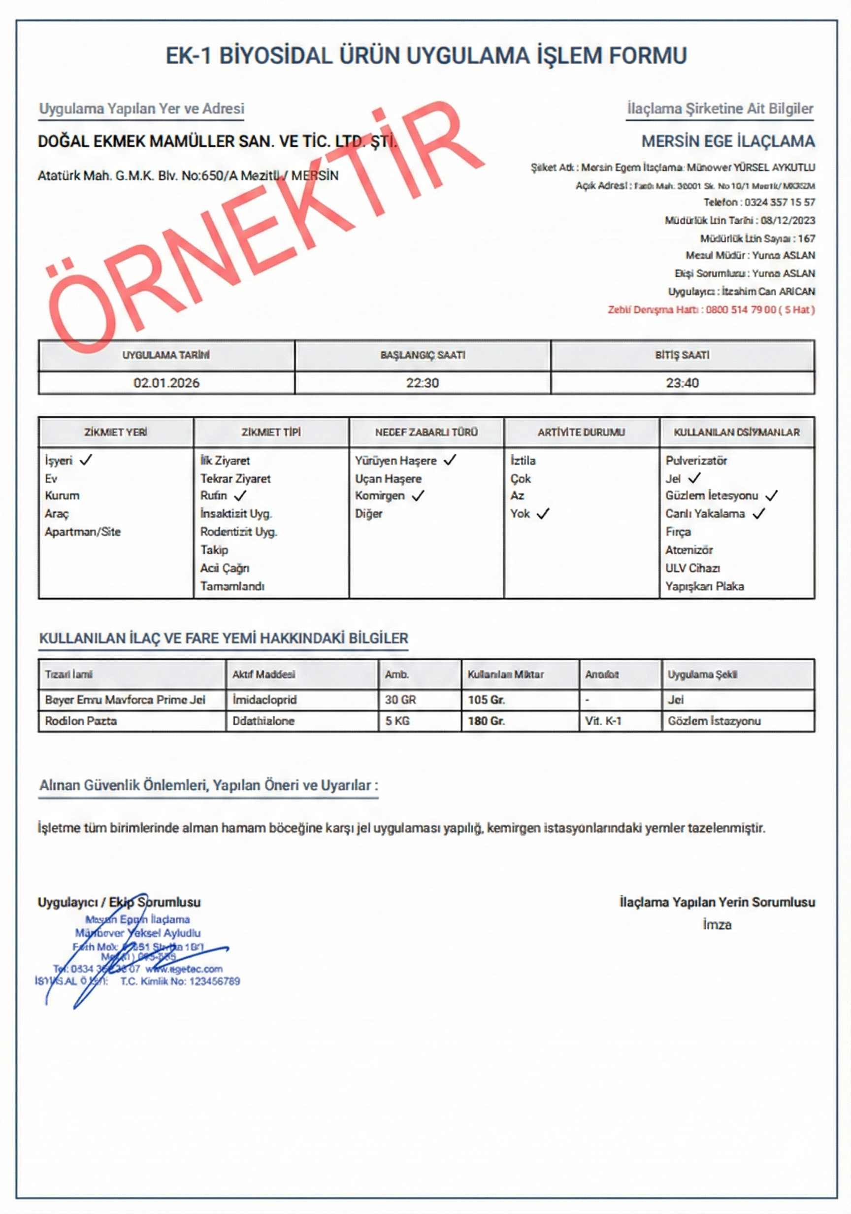 Saniyeler içinde profesyonel EK-1 BİYOSİDAL ÜRÜN UYGULAMA İŞLEM FORMU oluşturun, PDF olarak ister bilgisayarınıza kaydedin, ister cepten WhatsApp veya E-mail ile anında gönderin. Hem de kaşeli ve imzalı şekilde.